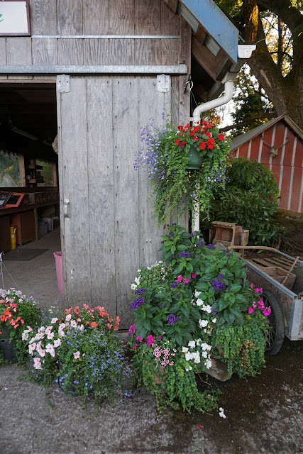 | If you look out in the field when you are at the farm, notice the tall orange marigolds, they denote a change in variety. The white signs with variety names on them are nearby. |