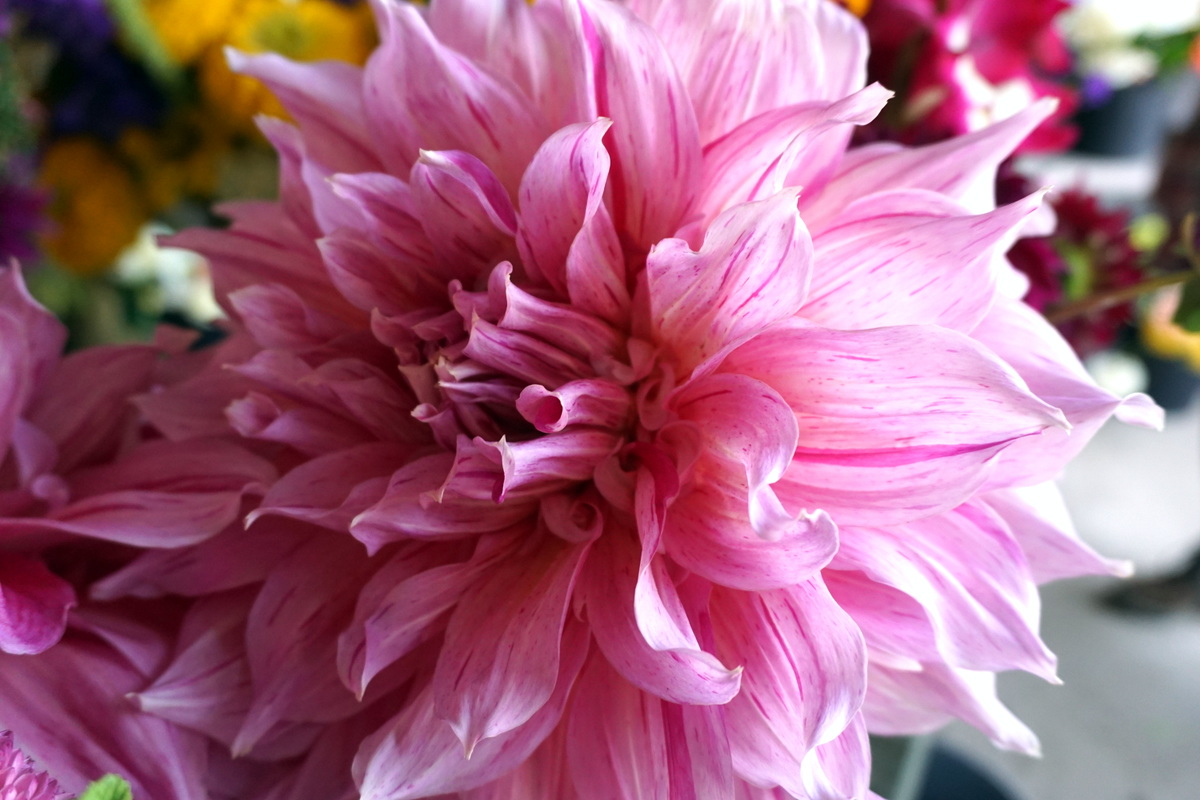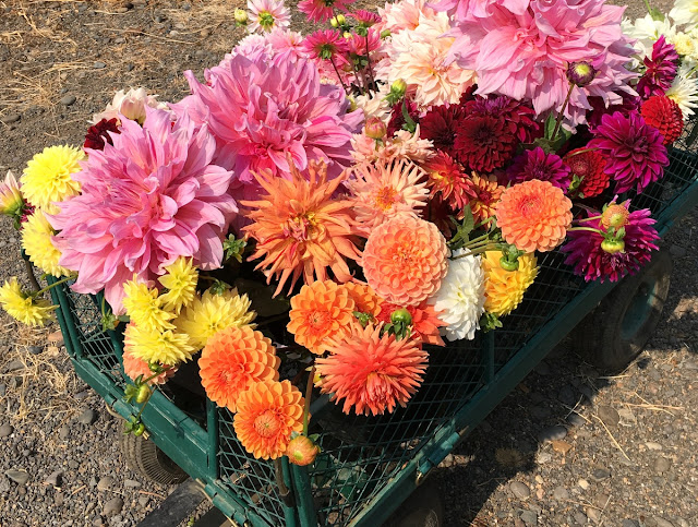 | A cart full of dahlias that will have their stems "heat treated" so their blooms will last longer. |